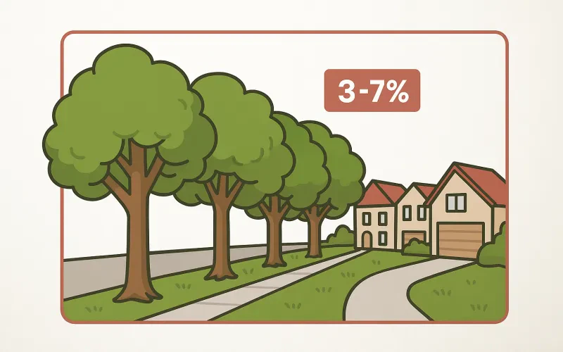 Homes with mature street trees in Northern Virginia command prices 3-7% higher than comparable properties without trees